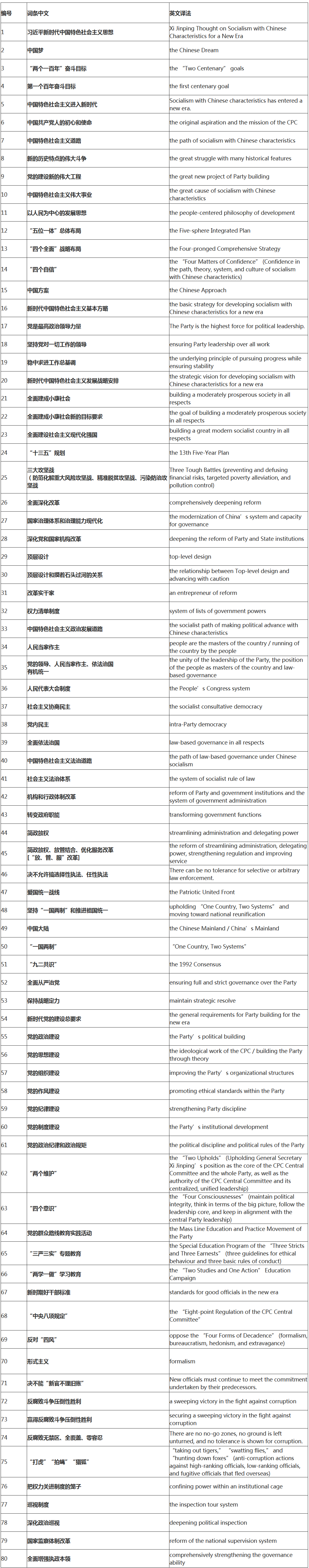 A Chinese-English Political Glossary in Chinese Documents and Media (2012-2018)