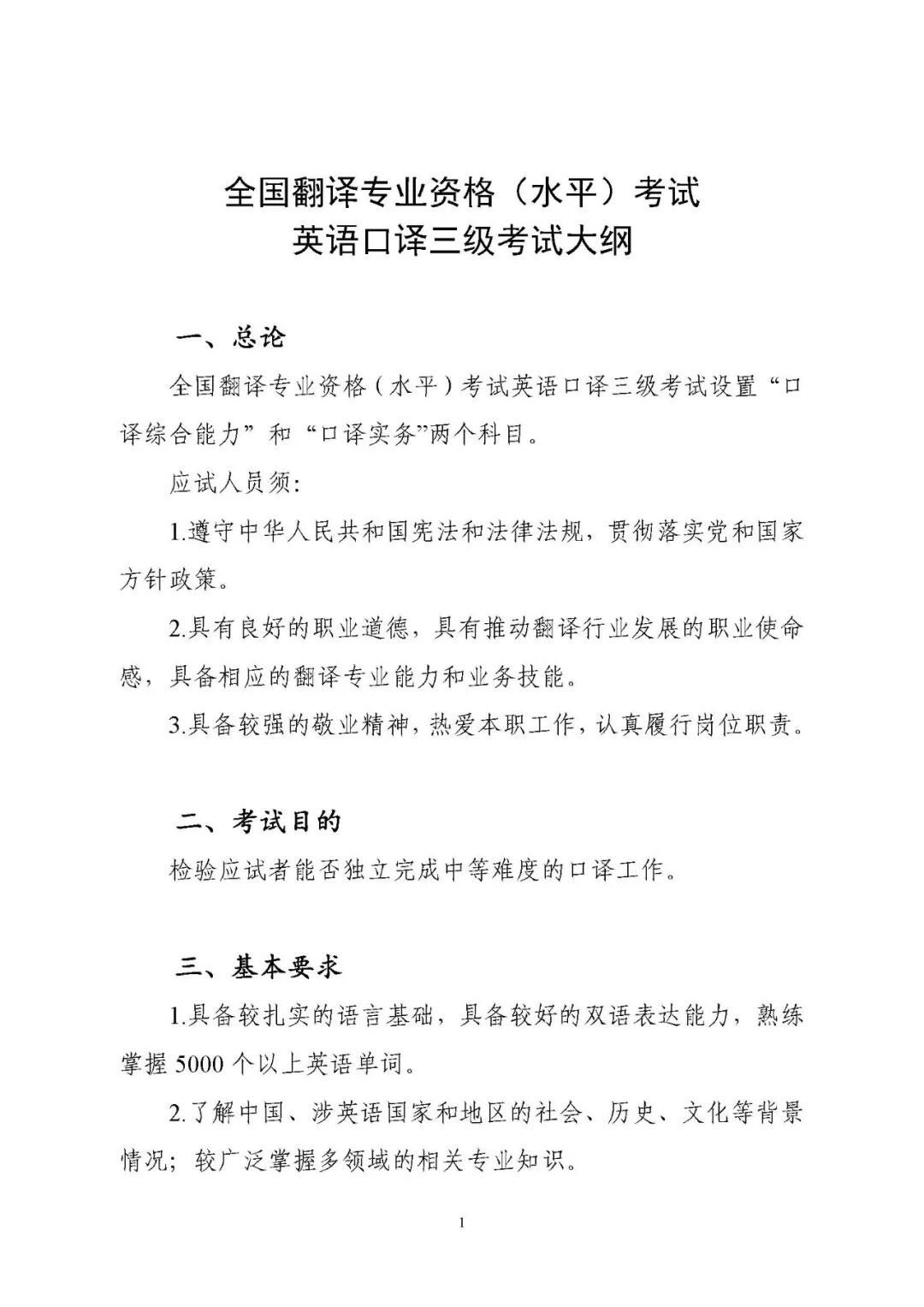 之前推送过CATTI 英语口译二级(交替传译)考试大纲(2020版)和CATTI英语笔译二级考试大纲(2020版),今天推送一个三级口译的考试大纲,供考三口的小伙伴参考。