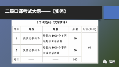 通过分析大纲发现:首先需要信息准确率高(70%以上);逻辑正确,主旨意思没有跑偏,不能把整个意思说错说反,在个基础上,你可以合理意译发挥是没有问题的,因为口译表达本身就很灵活;接下来,口译技巧运用熟练;然后是职业素养(是否具备职业口译员的潜力),这是加分项,不是绝对项。