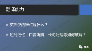 听力听辨:除了英语的听辨外,汉译英也需要听懂,把隐形逻辑的中文短句,在记信息的时候串起来,翻译时以英语的显性逻辑方式呈现出来;