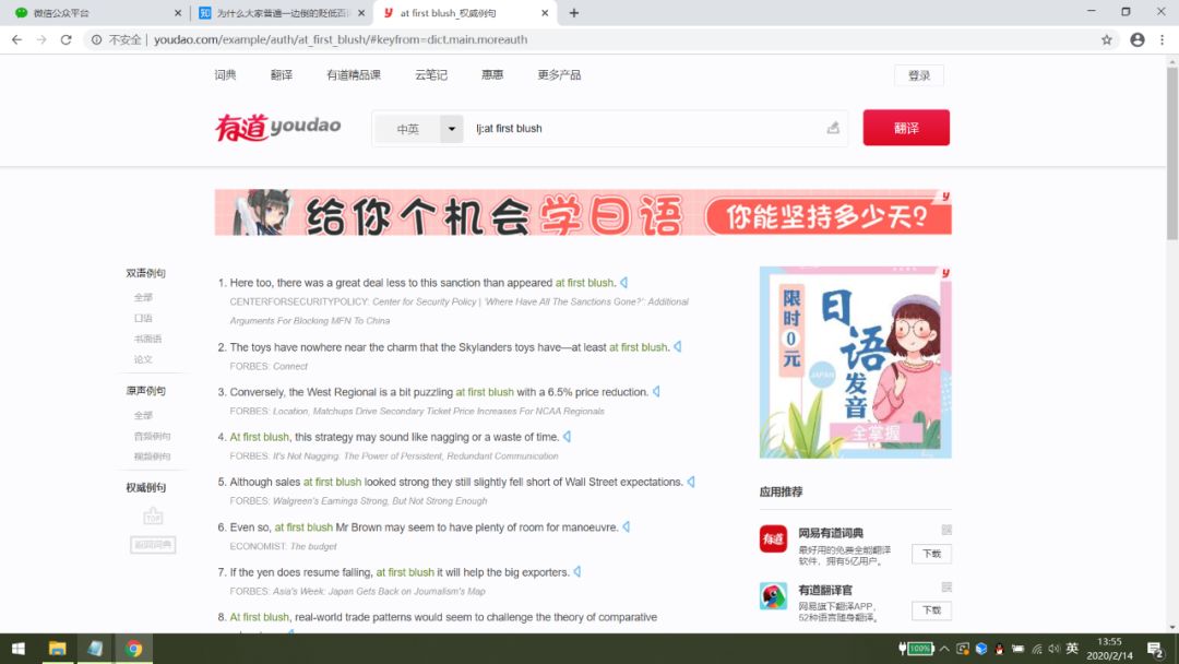 百思不得其姐了吧,而实际应用中,at first blush还真不算生僻,因为随便一截屏,满满都是例句。其实是什么逻辑?眼角的余“光”瞥了一眼呗,或者是目“光”扫到了呗。