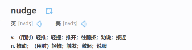 单词nudge的含义如下,那为何摩西说这个单词一看就知道一定是英语本族单词呢?线索在于其结尾发/dʒ/音的字母组合dge。