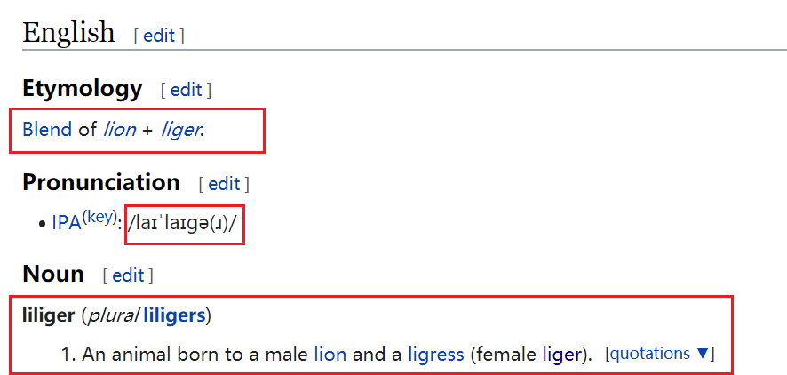 混成混成=混合而成,象liger狮虎兽和tigon虎狮兽这样的单词就属于英语单词中很特别的一个种类,叫portmanteau [pɔːtˈmæntəʊ] n.混成词,请看我2015年出版的书籍《英语单词圣经》中的解释和更多例子: