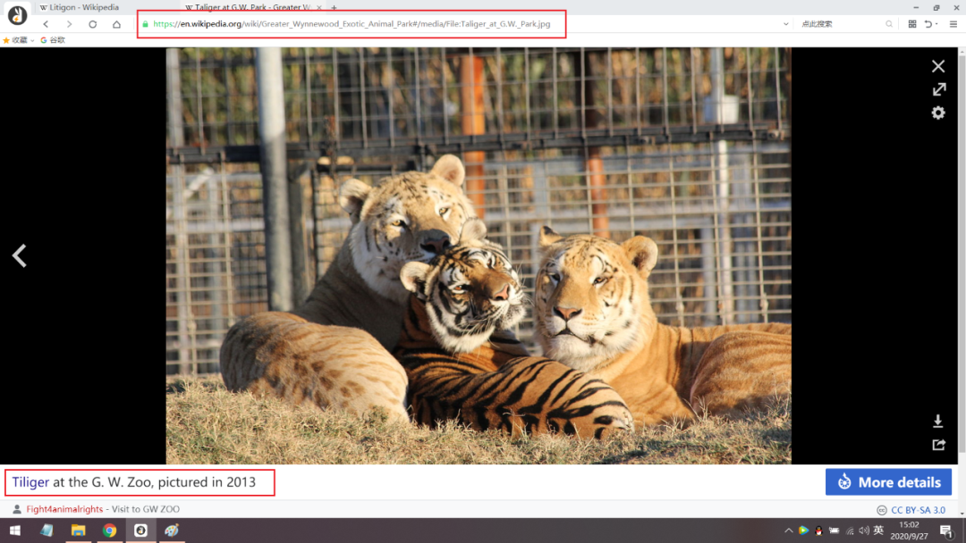要不说我摩西头铁呢,我竟然写了邮件咨询美国俄克拉荷马州这家动物园,回复了吗?not yet,若有回复,我们下回继续?下图中有这家动物园的网址以及拍摄于2013年的虎狮虎兽的照片。