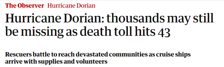 Hurricane Dorian: thousands may still be missing as death toll hits 43