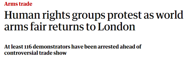 Human rights groups protest as world arms fair returns to London