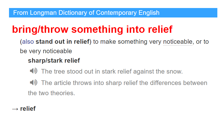 由此我们可以知道bring/throw something into relief是一个固定搭配,意思是“使……显得更为突出”,上面的标题可以理解为“巴基斯坦洪水凸显了防灾的迫切性”。