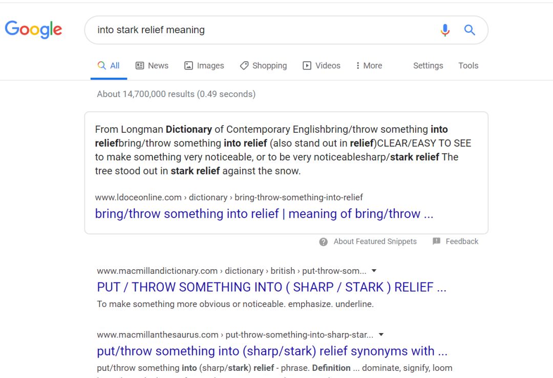 对于一些在传统词典上难以查到的单词或者短语,我们也可以使用谷歌来快速确定其含义。搜索格式是"XX meaning",比如《卫报》有这样一个标题: