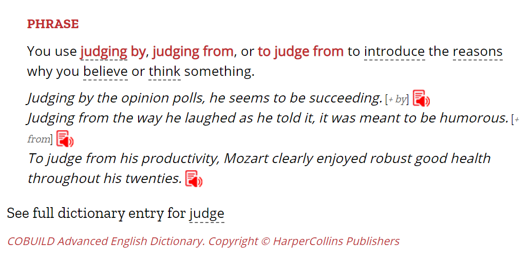 这种情况一般出现在常见的几个结构里面,比如judging by/from, given (that), considering (that), owing to, provided (that),比如柯林斯词典中就有这样一个例句:Judging from the way he laughed as he told it, it was meant to be humorous.