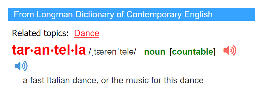 又比如在《哈利波特与密室》中,马尔福使用一个名为"Tarantallegra"的魔咒打中了哈利,导致哈利双脚不受控制地抖动。Tarantallegra这一魔咒来源于意大利语tarantella,它是指“塔兰台拉舞”,这是一种意大利传统民间舞蹈,其特点是节奏急促,腿部动作丰富多变。魔咒借用这一舞种的名字同样非常形象恰当。
