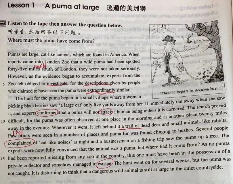 比如对于第一课A puma at large,有这么几个问题: