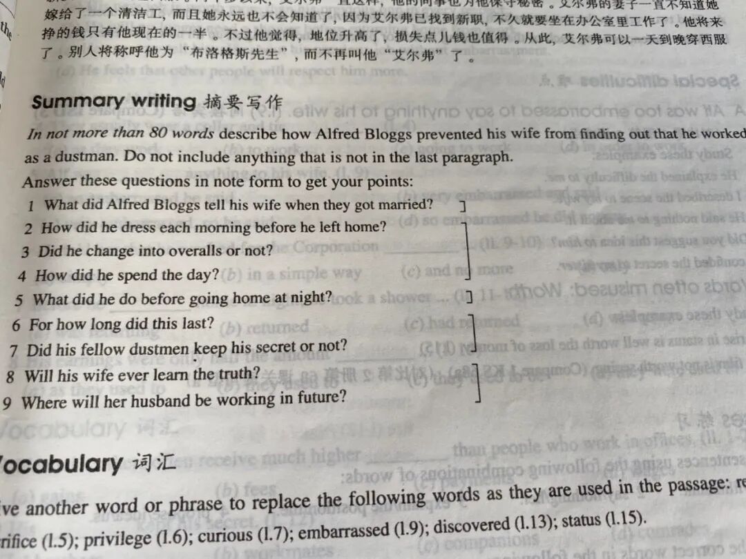 以上就是复述的一个基本流程,感兴趣的同学可以找一找新概念英语3第一单元的其他课文,按照这种方式去做复述练习。