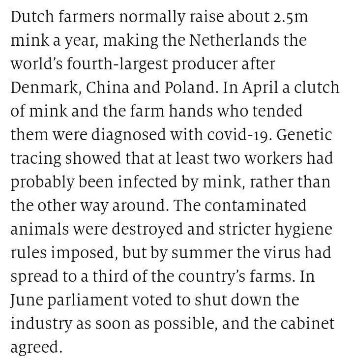 本期精读选自The Economist关于荷兰水貂养殖业的文章:Covid-19 ends Dutch mink farming
