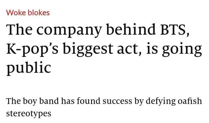 本期精读的文章来自The Economist对于韩国男团的报道:The company behind BTS, K-pop’s biggest act, is going public