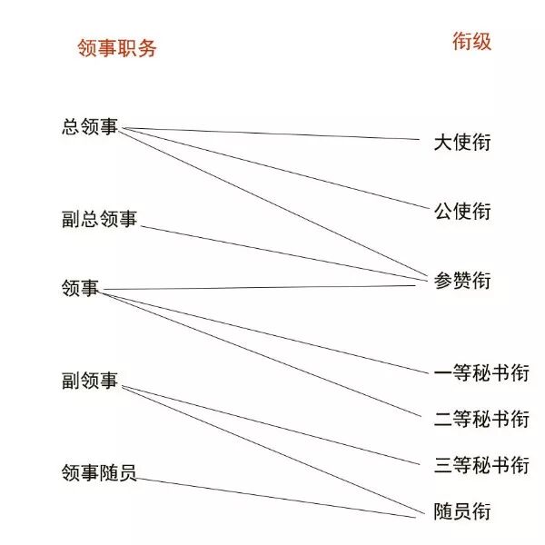 领事职务:分为总领事、副总领事、领事、副领事、领事随员。