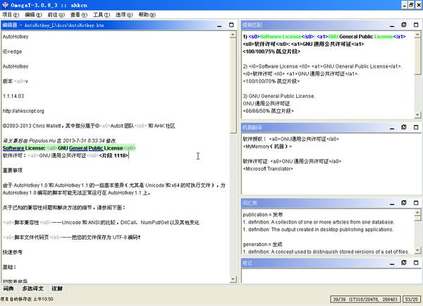 OmegaT 是一种使用Java语言编写的免费译法记忆程序。它是提供给专业翻译人员使用的工具。