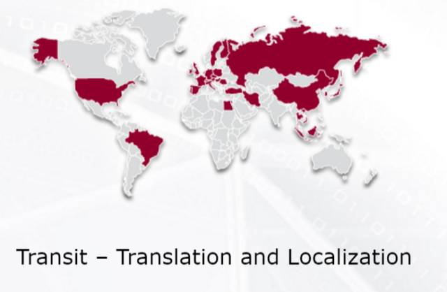 TRANSIT同时也是技术性翻译与在文字地化工作的专业软件,支援超过 100 种以上的语言格式,包括亚洲、中东以及东欧语系。广泛被应用于企业全球化作业程序。
