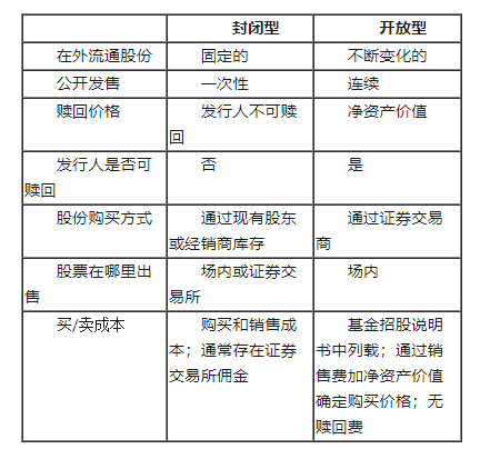 封闭型投资公司和开放型投资公司的区别如下表所示: